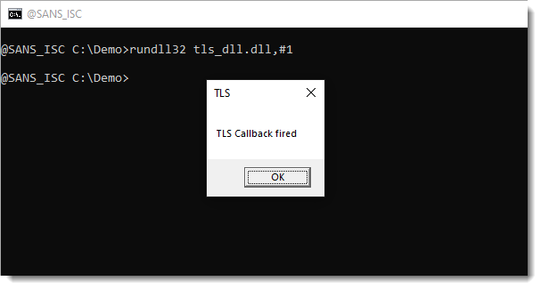 Xavier’s diary entry “Abusing DLLs EntryPoint for the Fun” inspired me to do some tests with TLS Callbacks and DLLs.