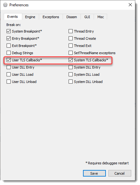 And it’s also important when performing dynamic analysis: when using a debugger, make sure to check how it is configured: