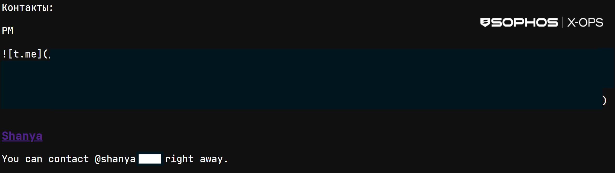 Figure 2: The post provides “Shanya’s” Telegram contact information (but we don’t)
